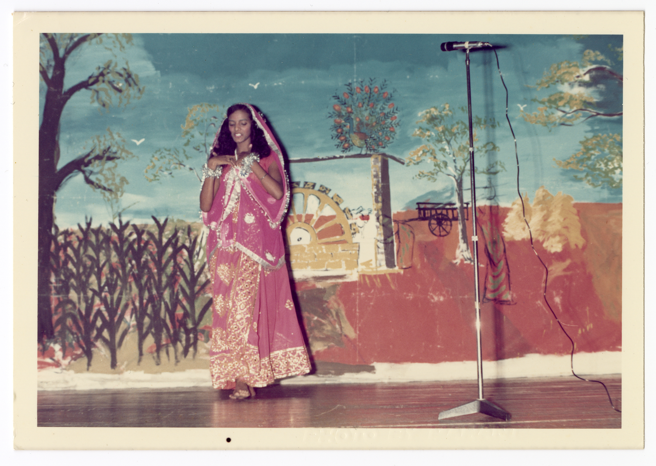 A dancer presents Indian music and dance to an audience as part of the Indian Cultural Society Derby. Taken at the Mandela Centre in Derby.