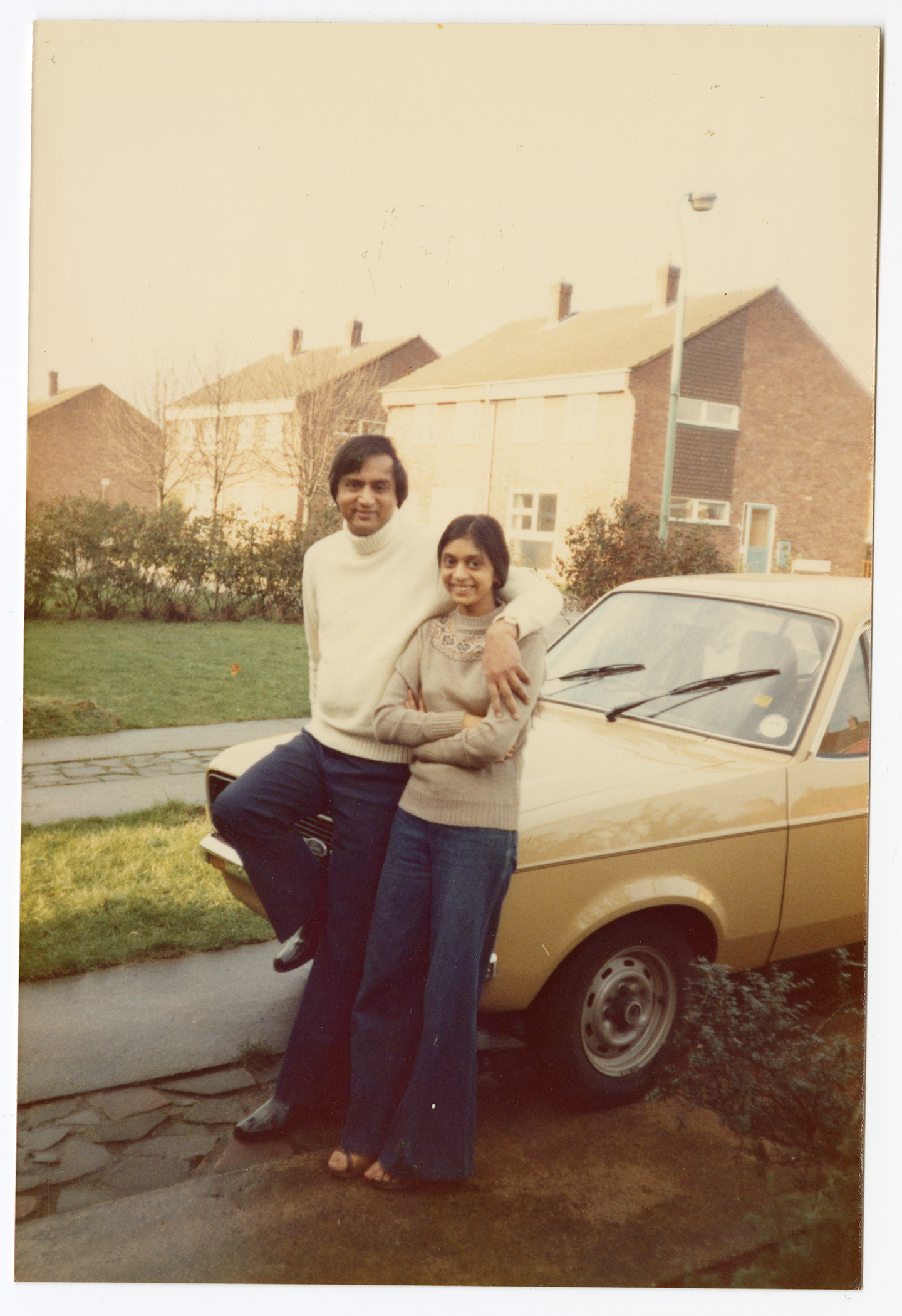 A couple pose sitting on the bonnet of a car. Photo taken in Sinfin, Derby.