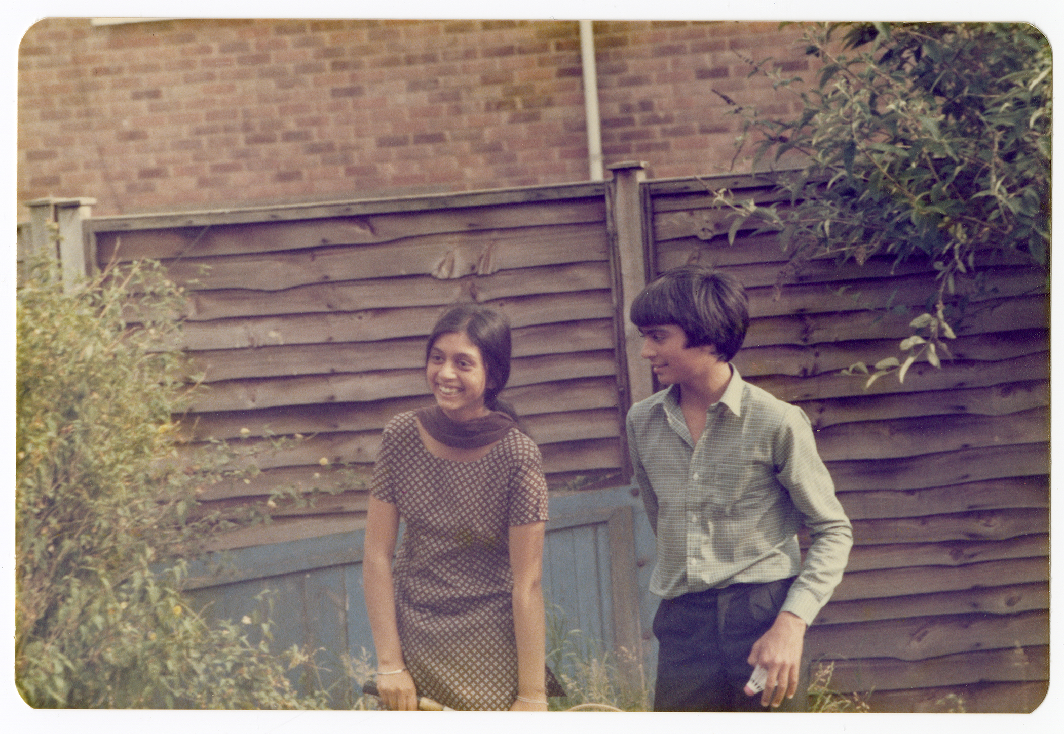 Two young people pose for a photograph in the garden of a house in Sinfin, Derby.
