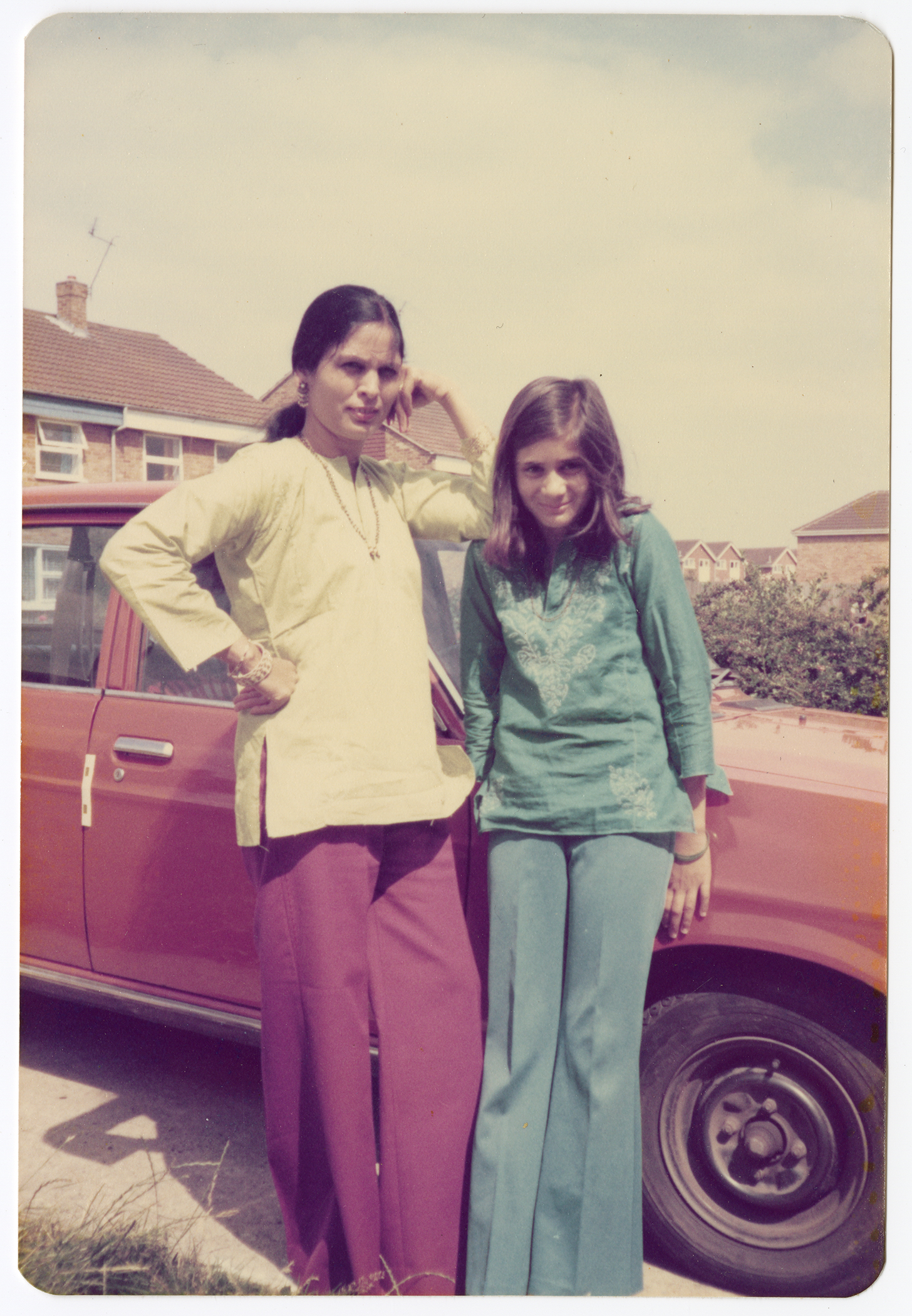 Two people pose next to a car in the garden of a house in Sinfin, Derby.