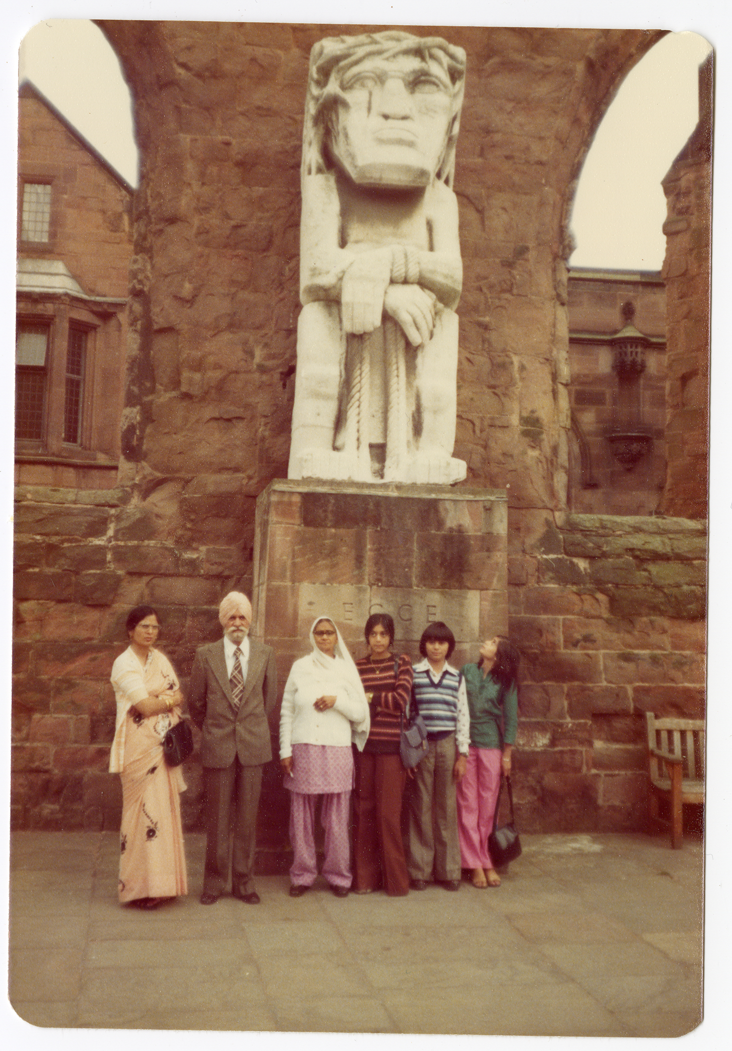 A group pose in front of the statue Ecce Homo by Jacob Epstien. Taken at Coventry Cathedral ruins.