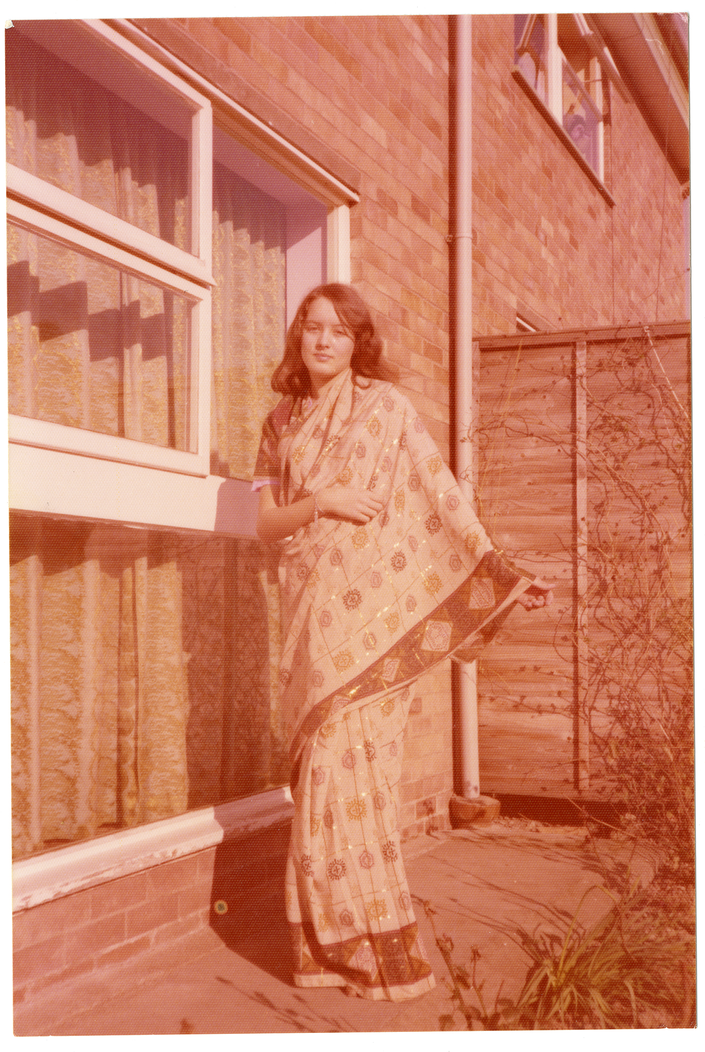 A photo taken of a neighbour wearing traditional Indian Saree.