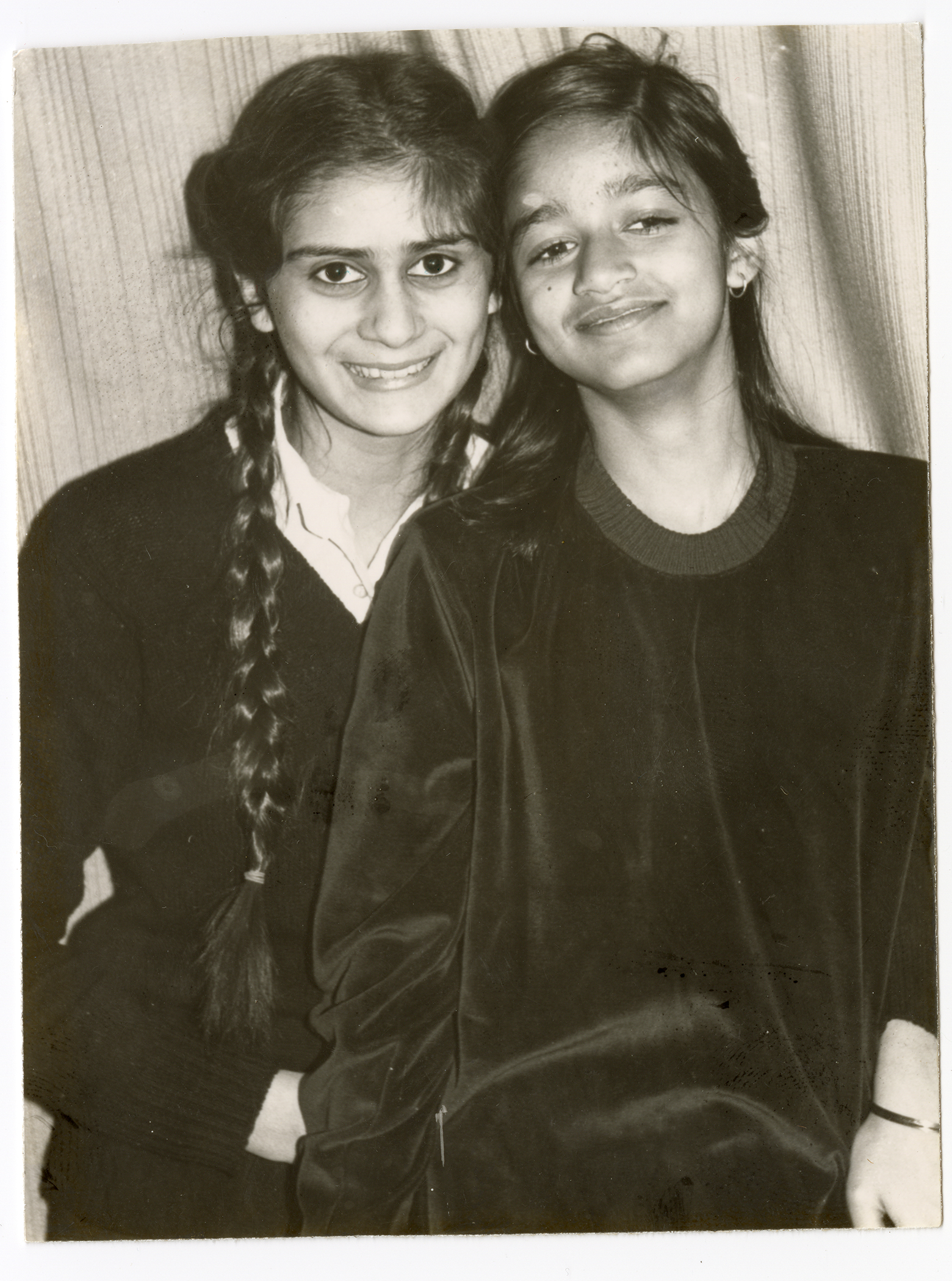 Two young people pose for a photograph in a house in Sinfin, Derby.