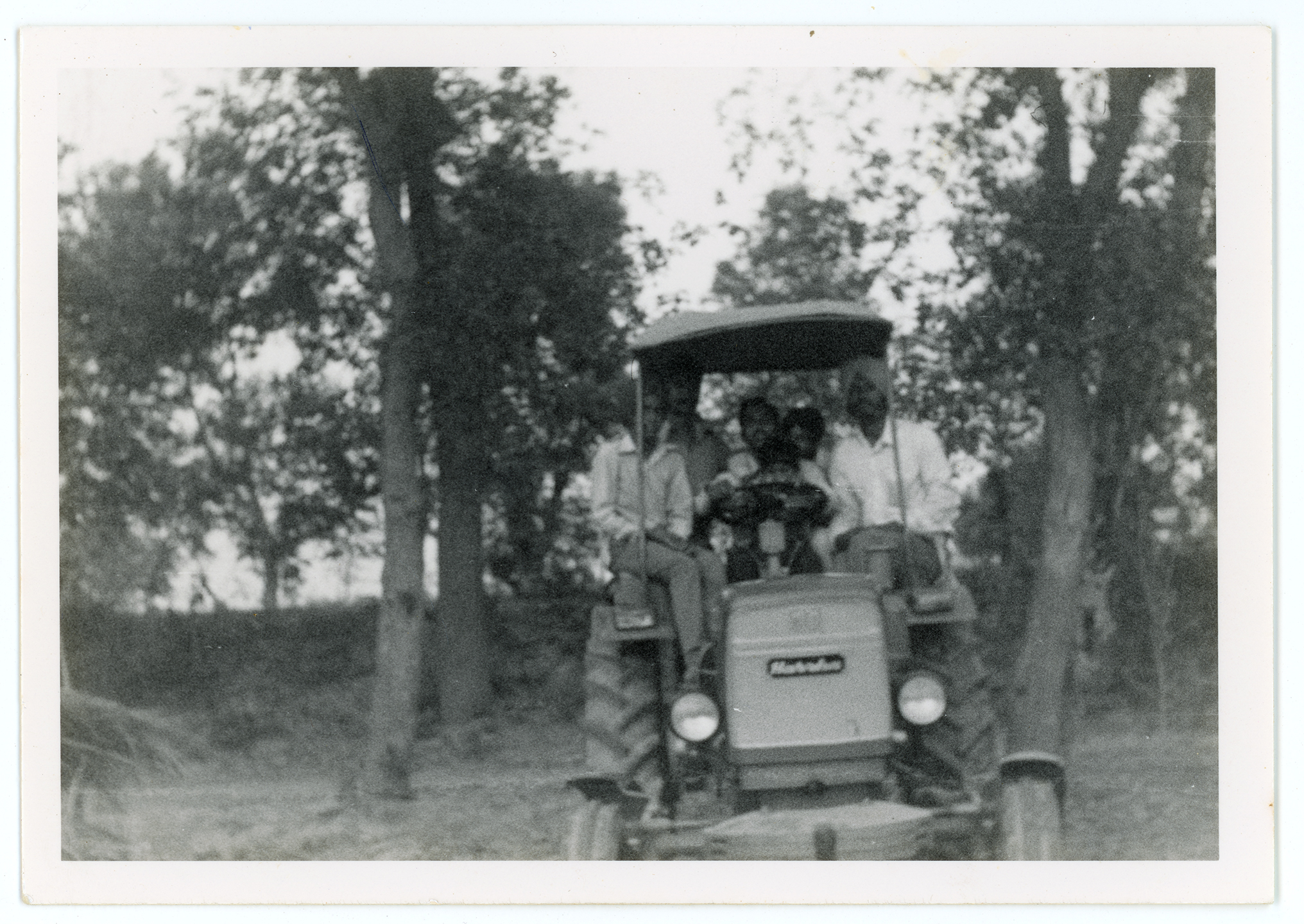 A group of men sat on a tractor in India.