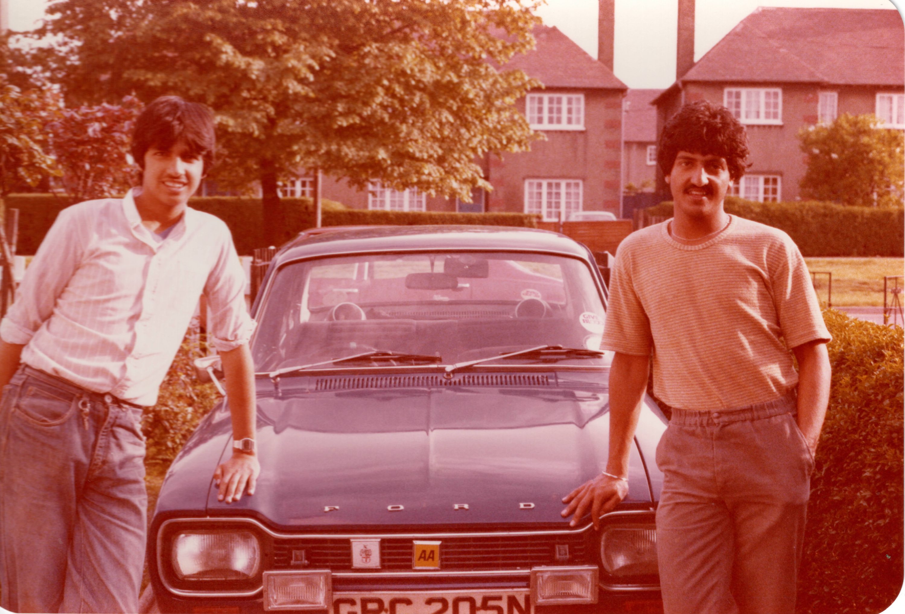 Two people pose for a photo in front of a new car. Taken on Osmaston Road, Derby.