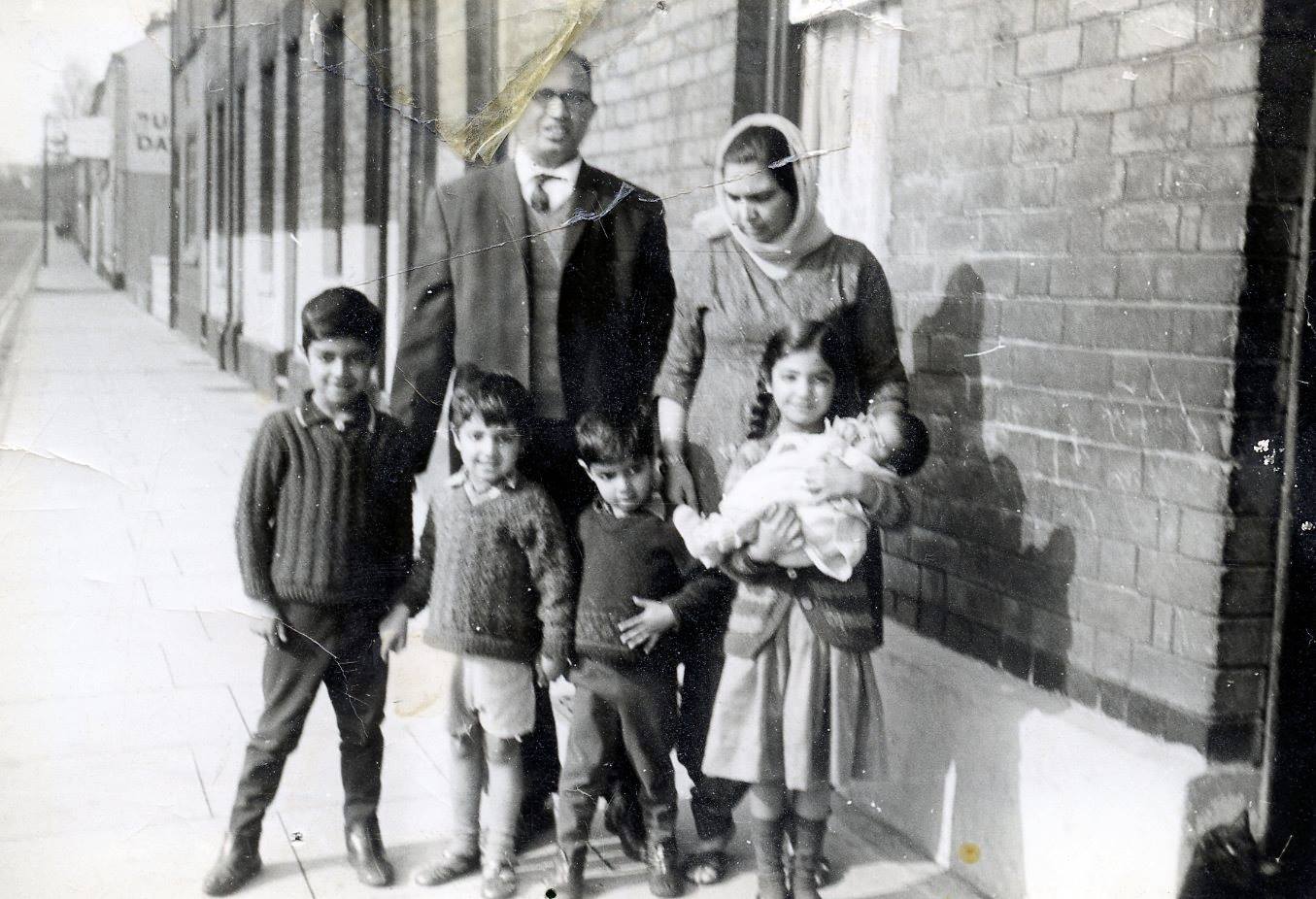 A family pose outside of a terraced house in Normanton, Derby.