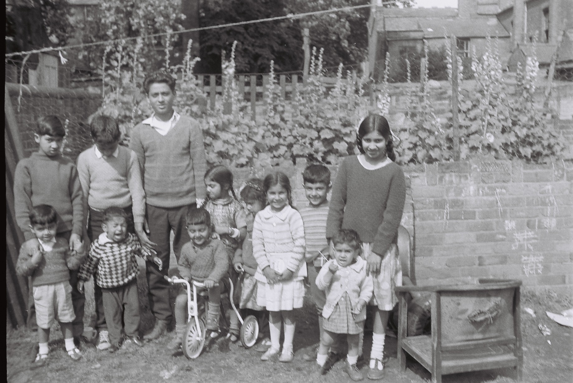 A group of people pause for a photograph in a garden in Birmingham. Taken during a family visit.