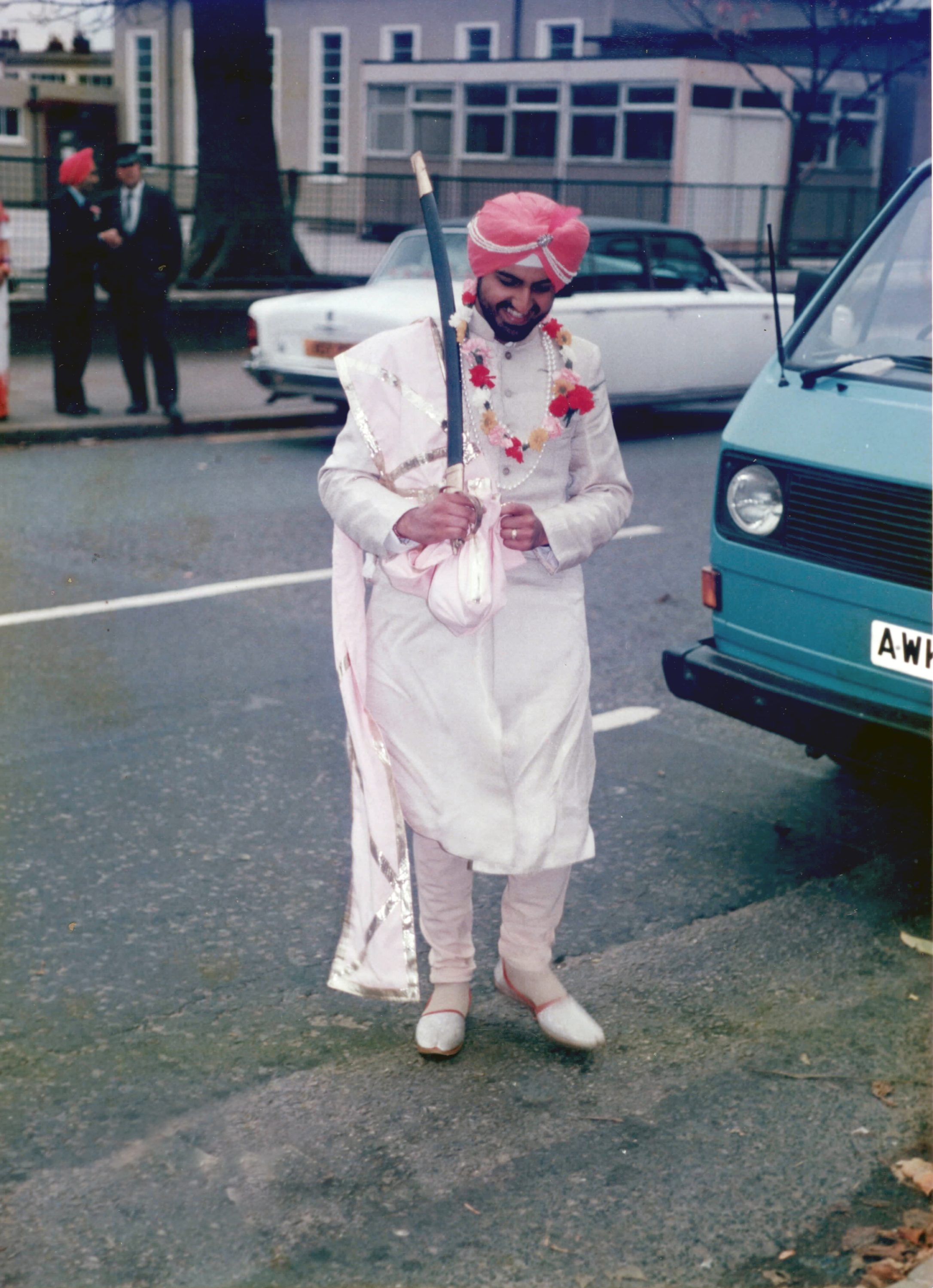A bridegroom arrives in Birmingham ready for a wedding ceremony.