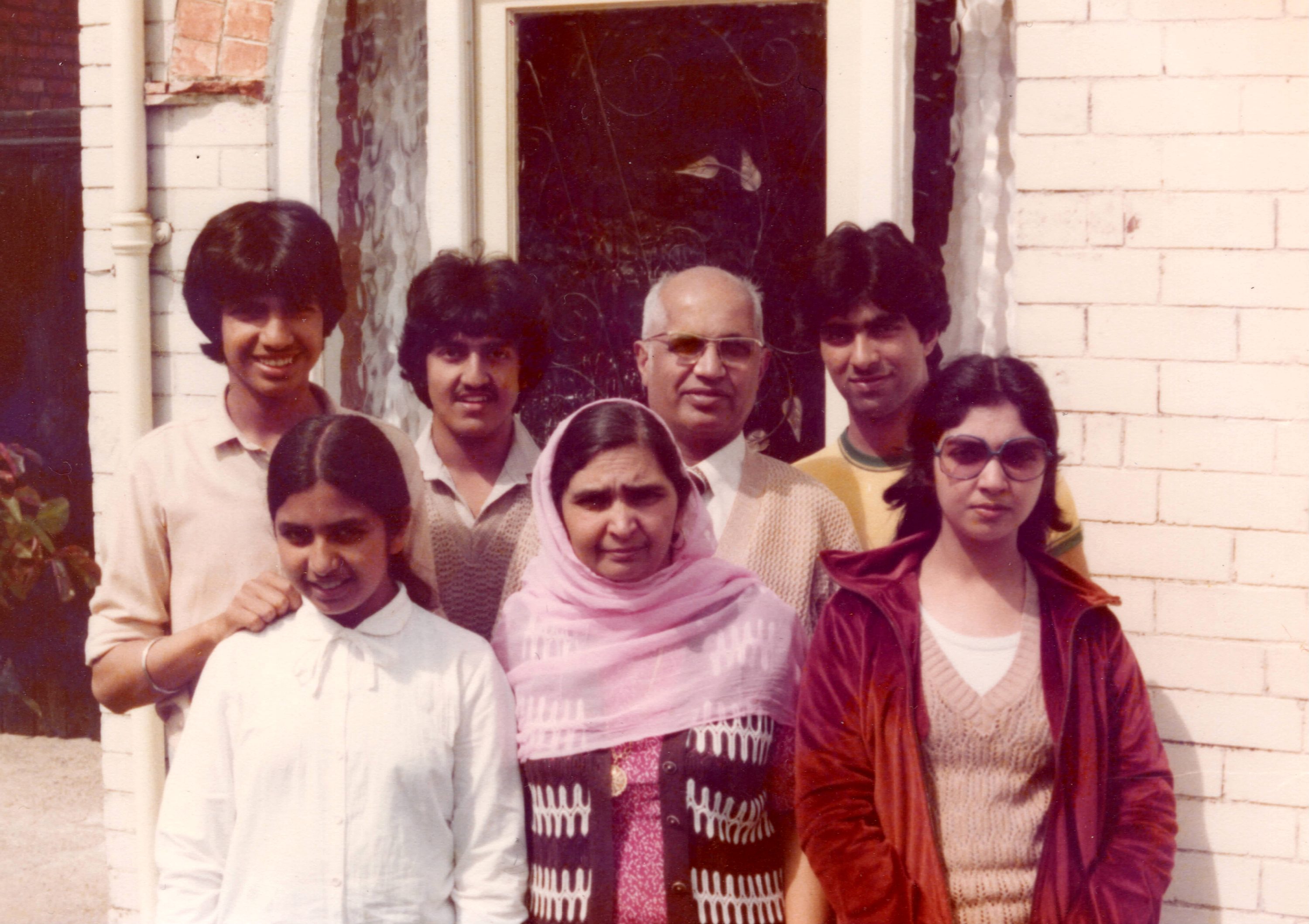A family pose for a photograph outside of their home in Derby.