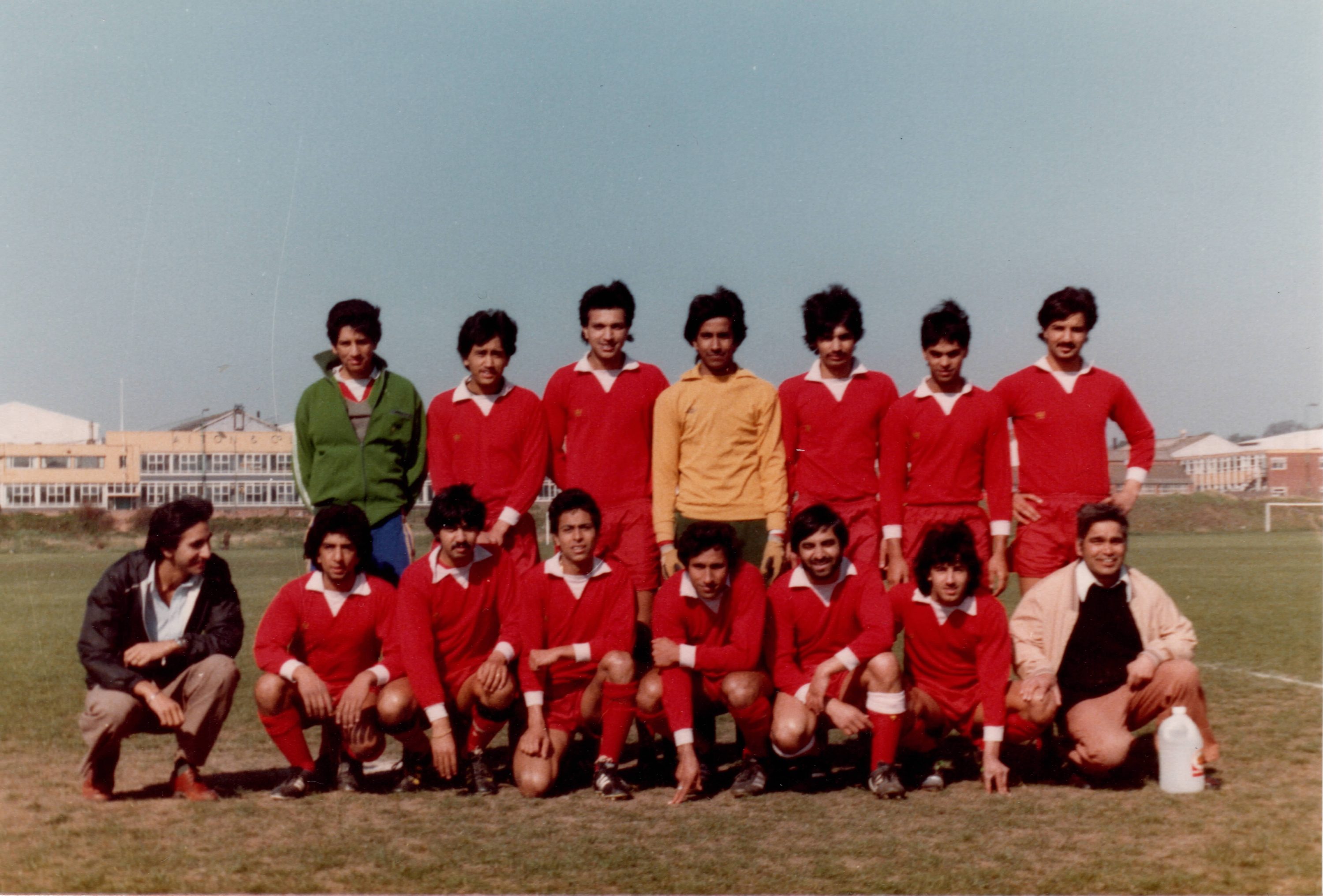 Santos kalsa football team pose for a photograph at Derby Racecourse.
