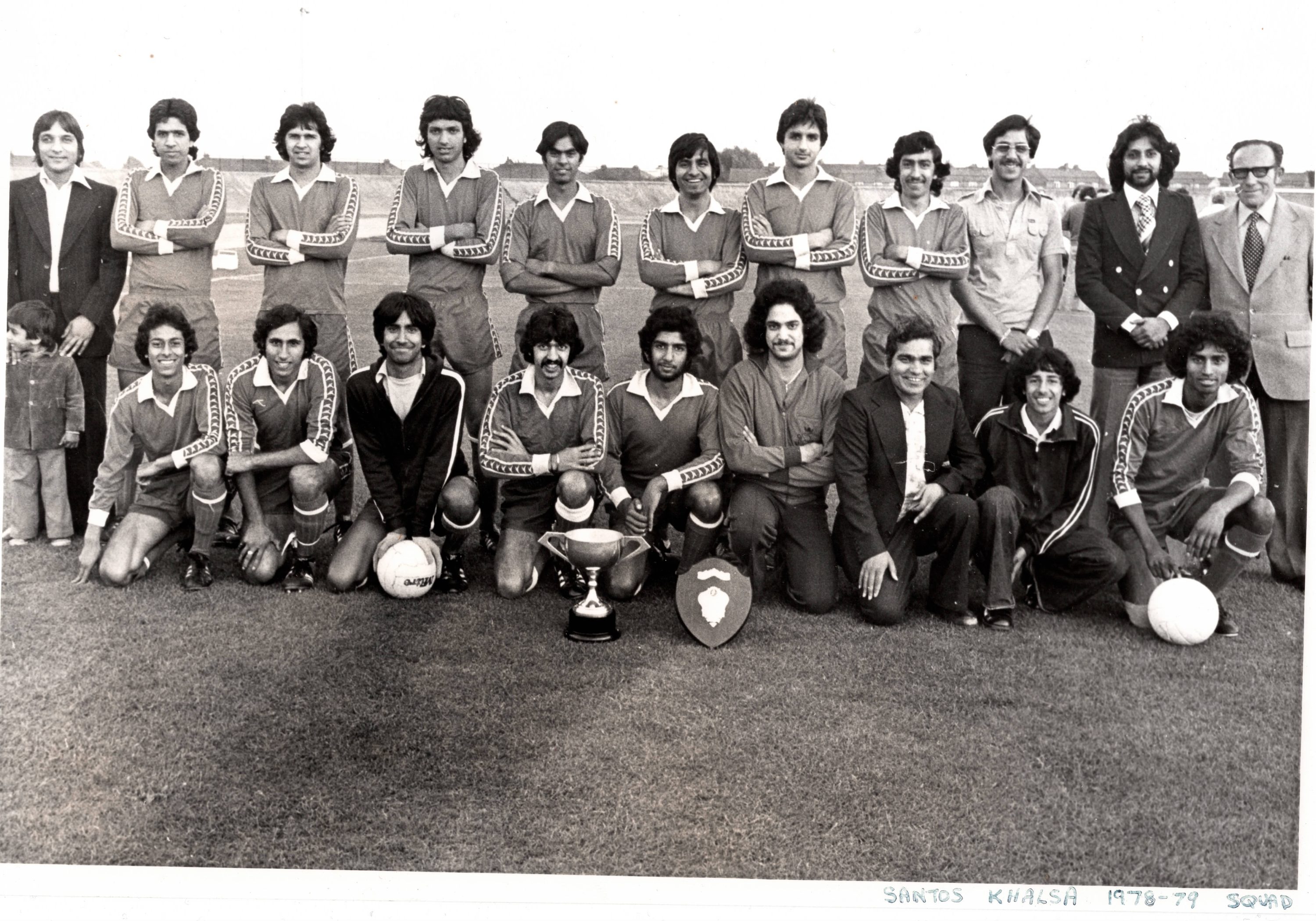 Santos Kalsa football team pose for a photo at Moorways stadium in Derby.
