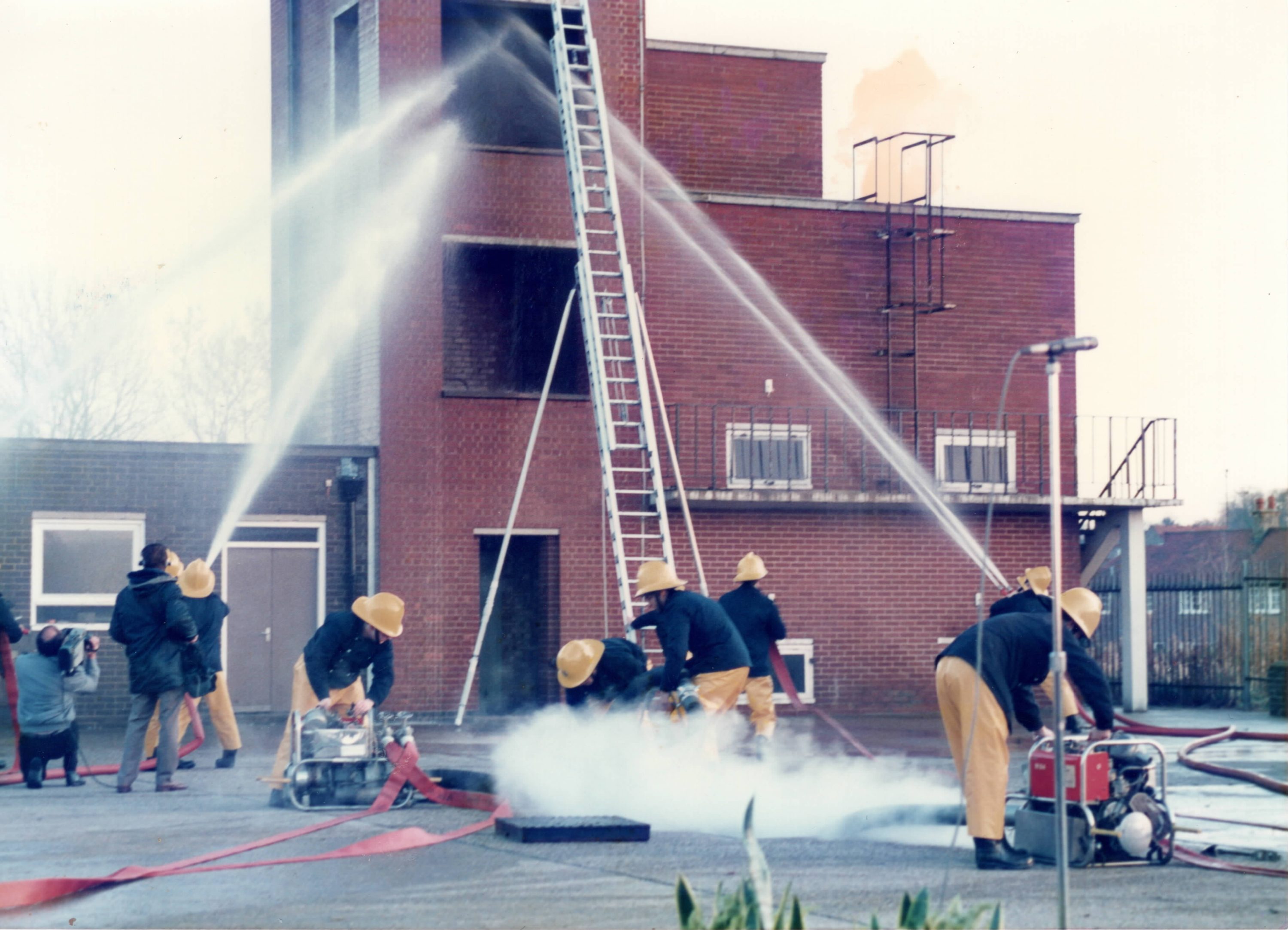 Firemen carry out a routine practice during a Passing Out Parade in Kingsway, Derby.