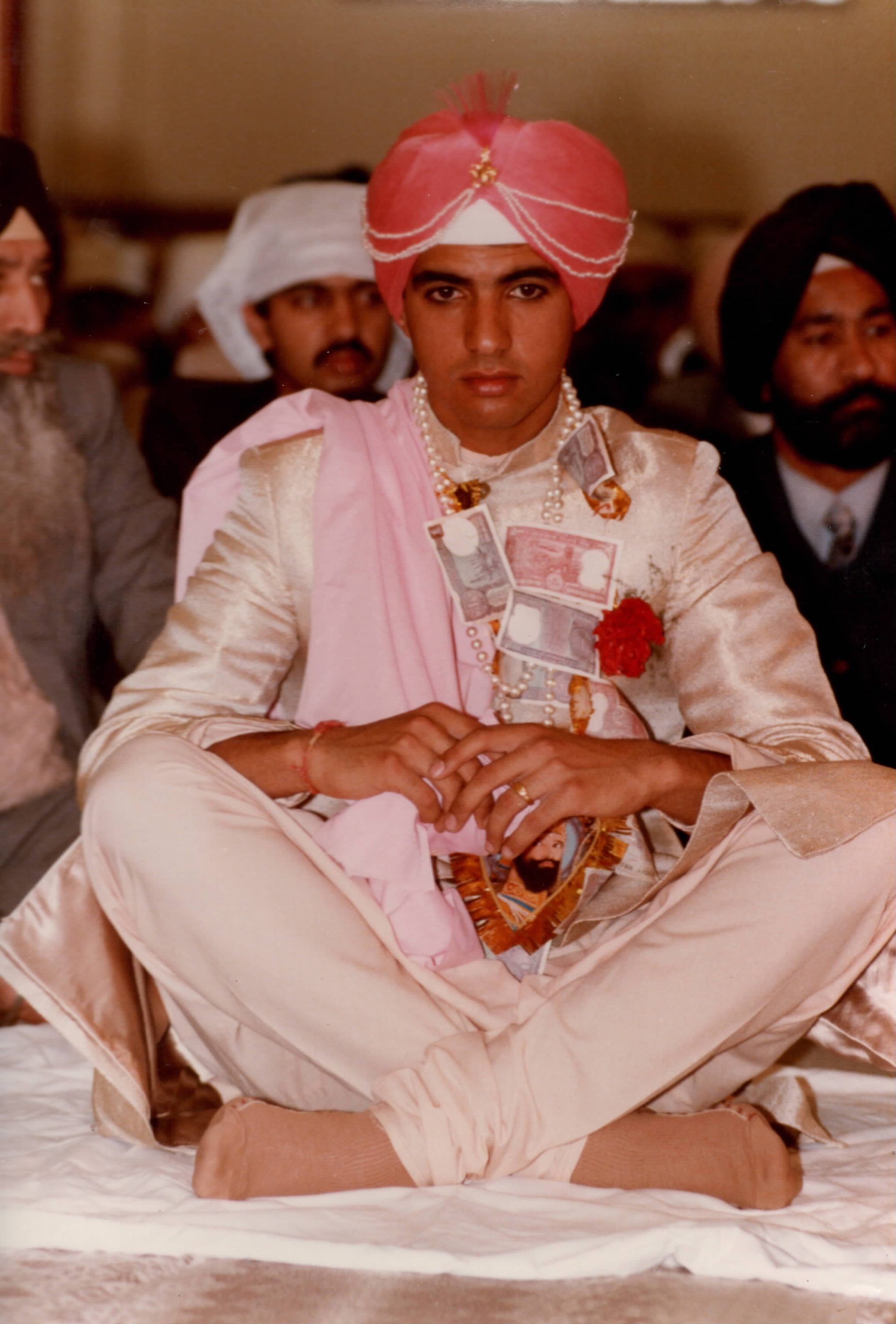 A photo taken of the groom during wedding celebrations in Leamington Spa Gurdwara.