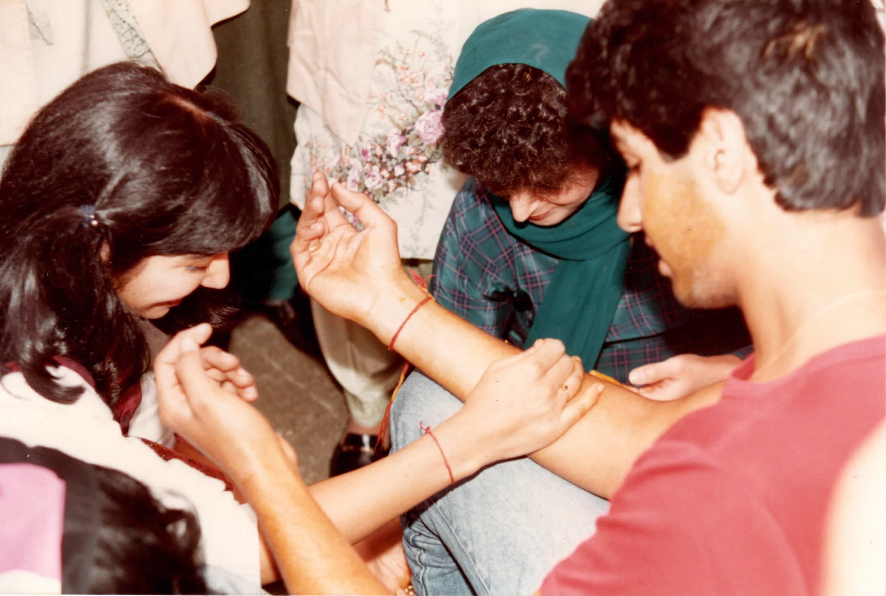 A photo taken during a Maiya ceremony as part of wedding celebrations. Taken in a house in Derby.