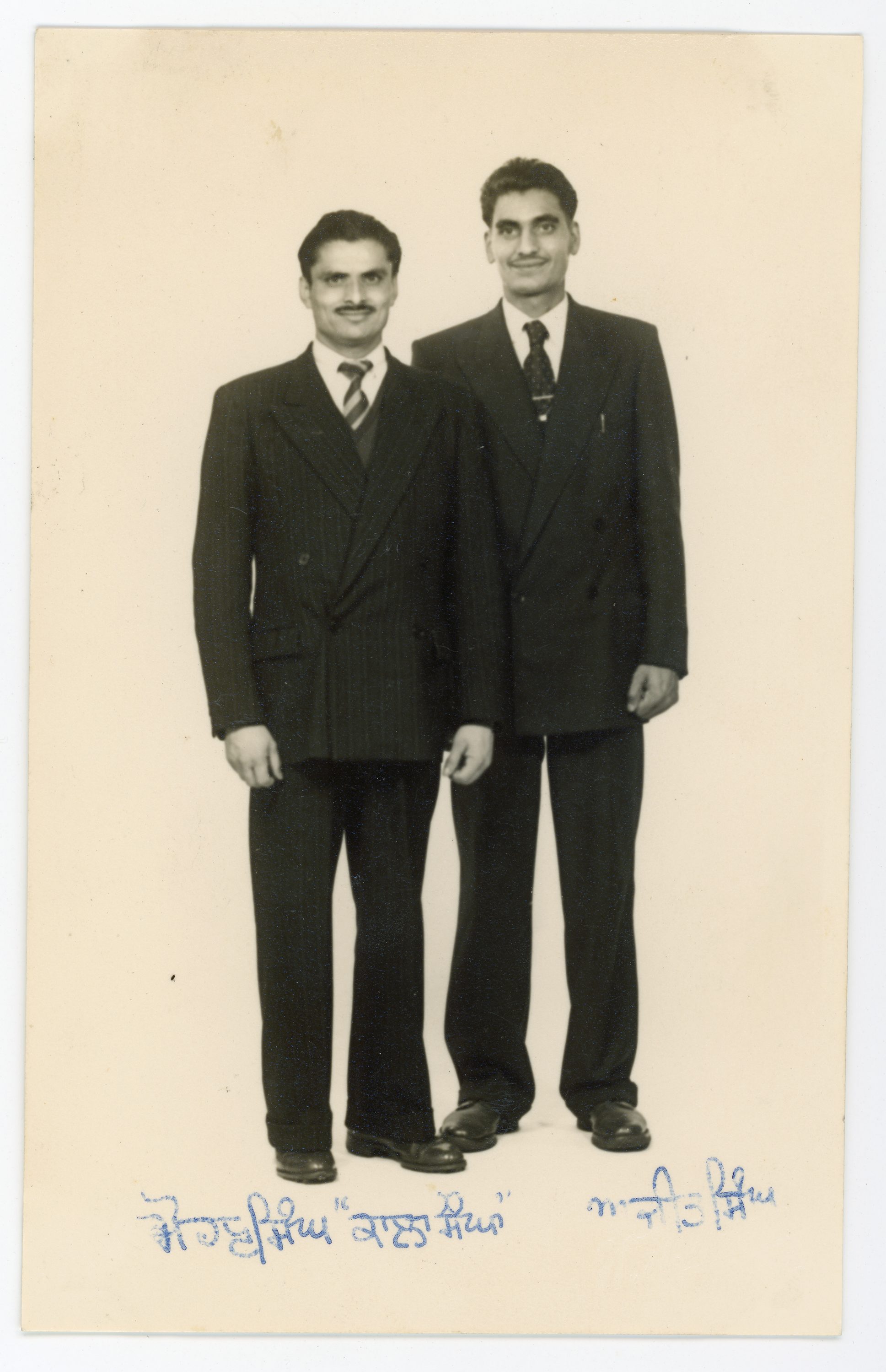 Two men pose for a portrait in W.W.Winters studio in Derby.