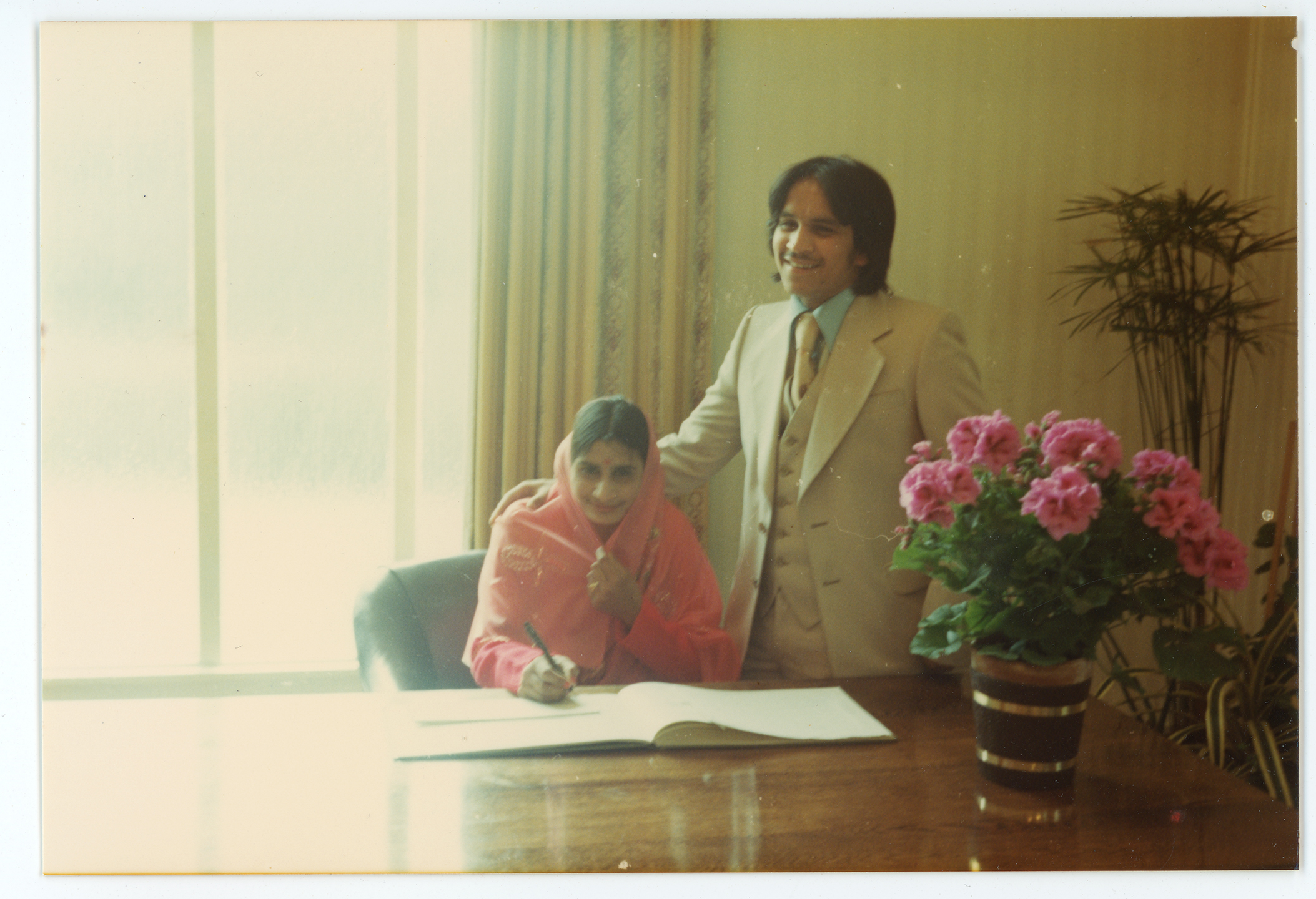 A couple sign papers during a wedding ceremony in Derby Registry Office.