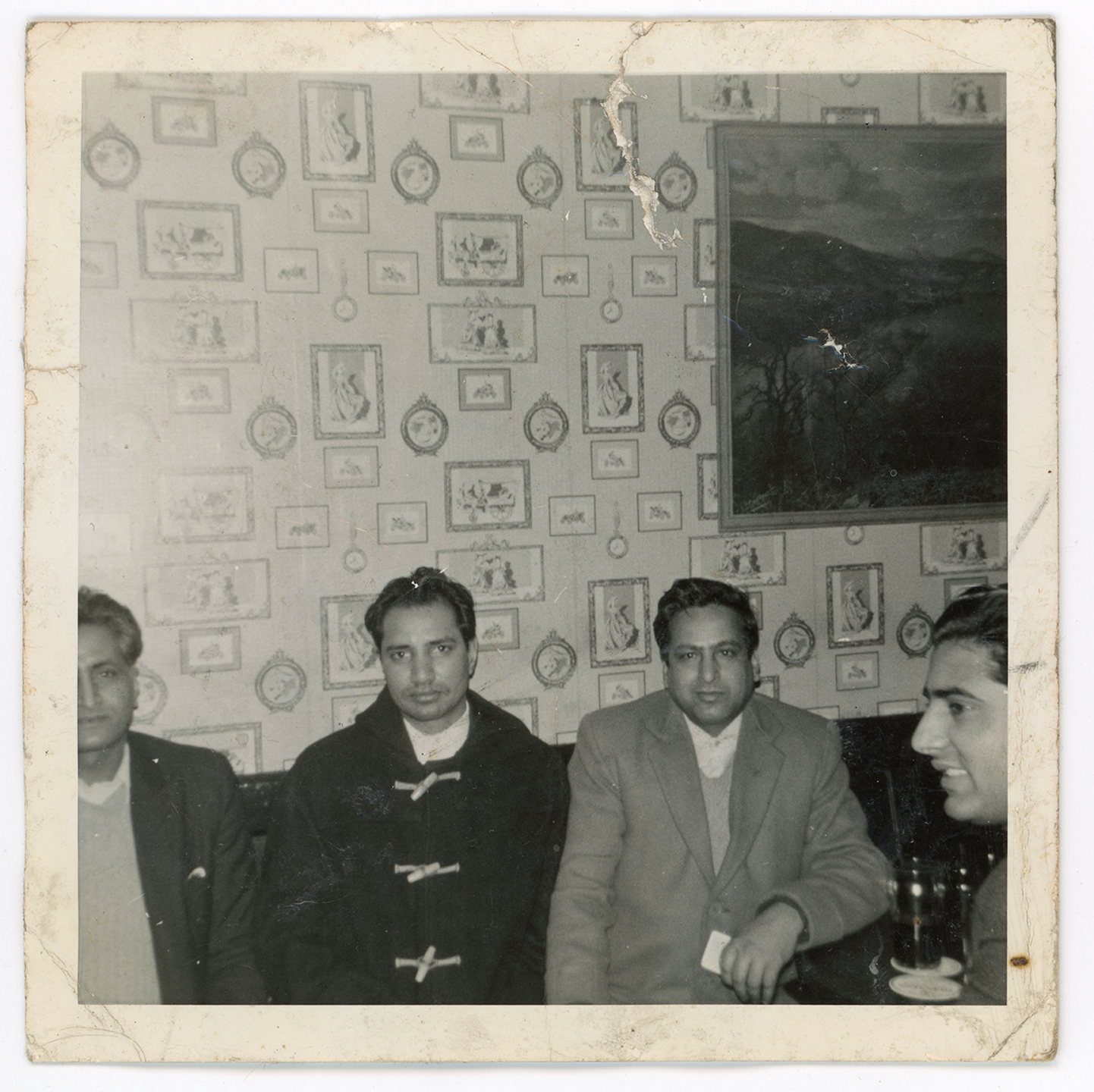 A group of men sit with drinks at the Grange pub in Normanton, Derby.