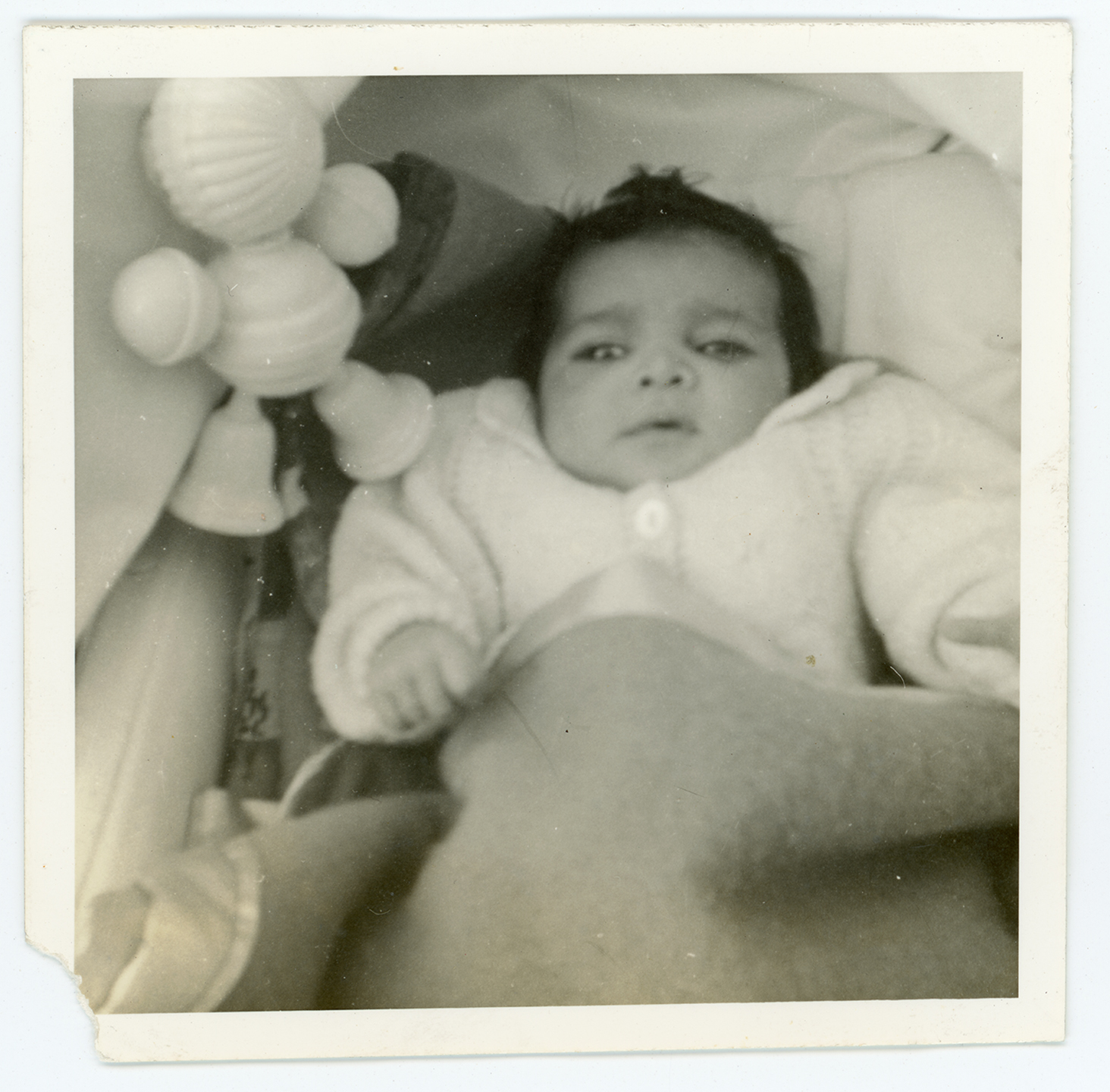 A photograph of a baby in their cot. Taken in the family home in Derby.
