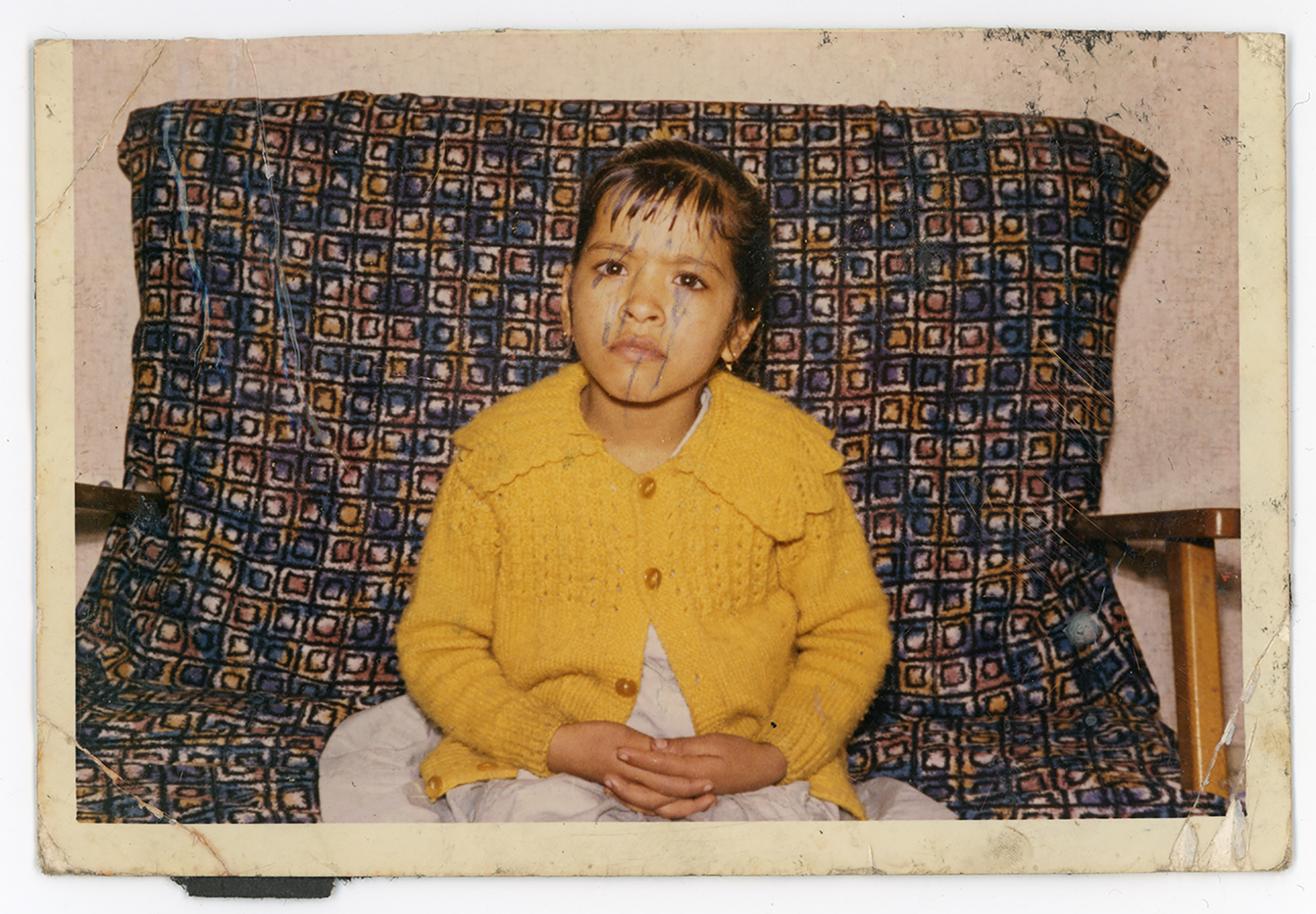 A young girl poses for a photograph in a home in Normanton, Derby.