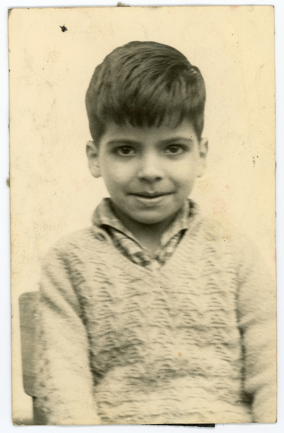 A young boy poses for a portrait in a junior school in Derby.