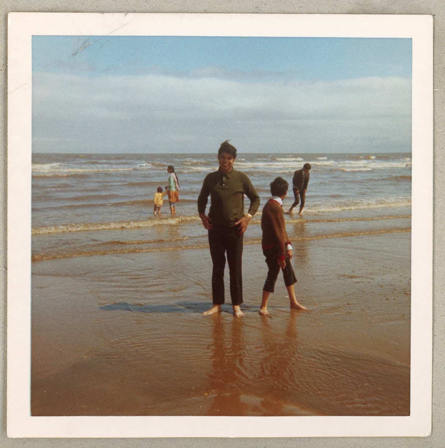 Two young people paddle in the sea at Skegness beach.