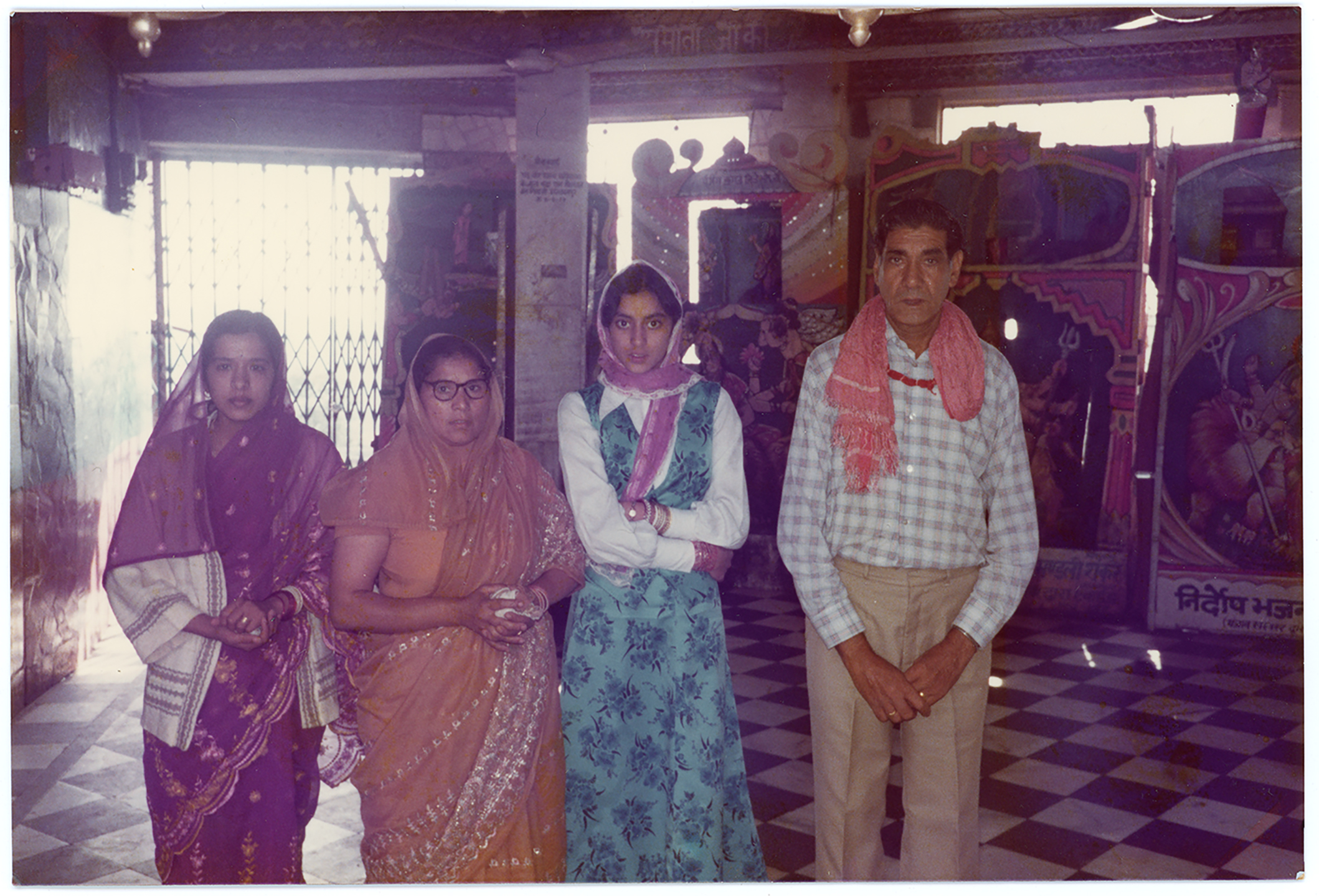 A group pose for a photograph during a visit to Chint Purani Temple in India.