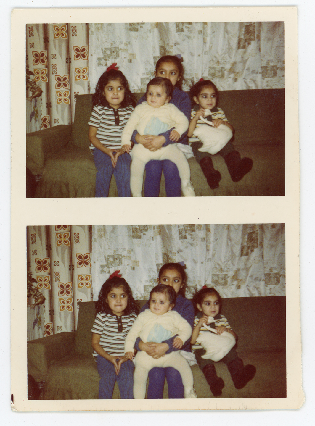 A group of children pose for a photograph in their home in Derby.