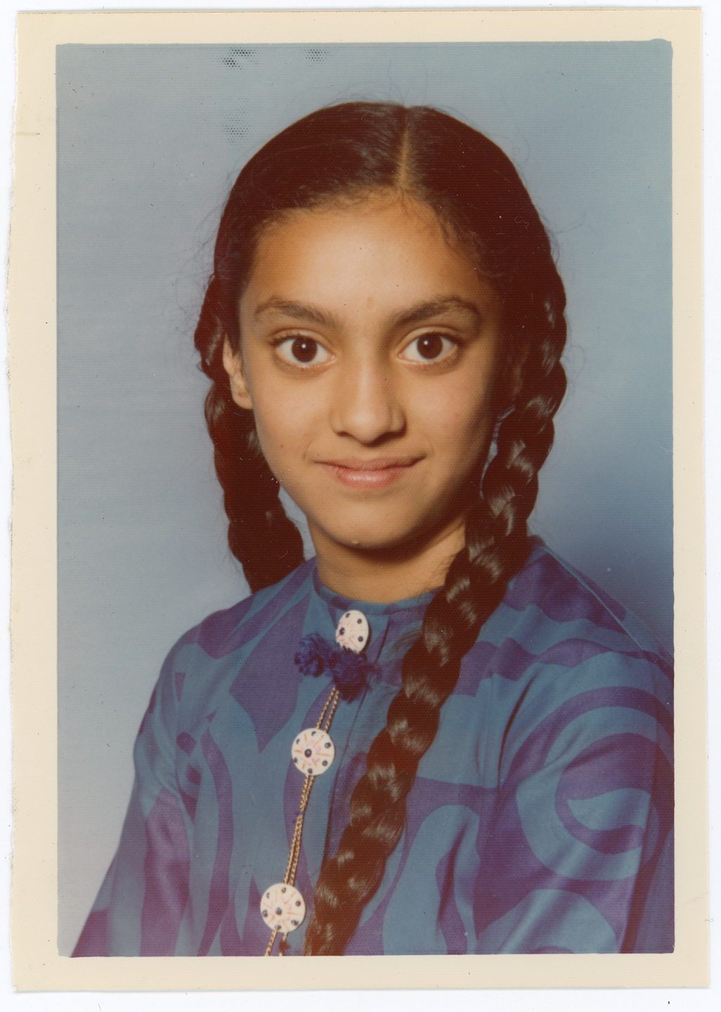A young girl poses for a portrait at a school in Derby.