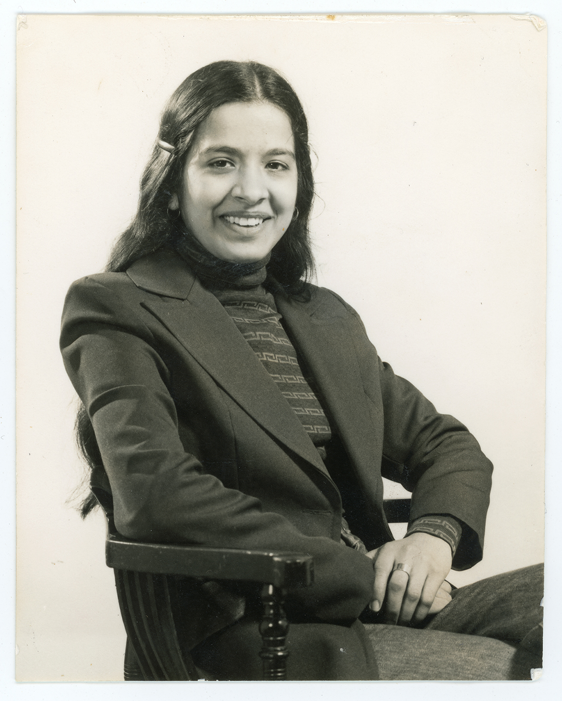 A young woman poses for a portrait in W.W.Winters Studios in Derby.