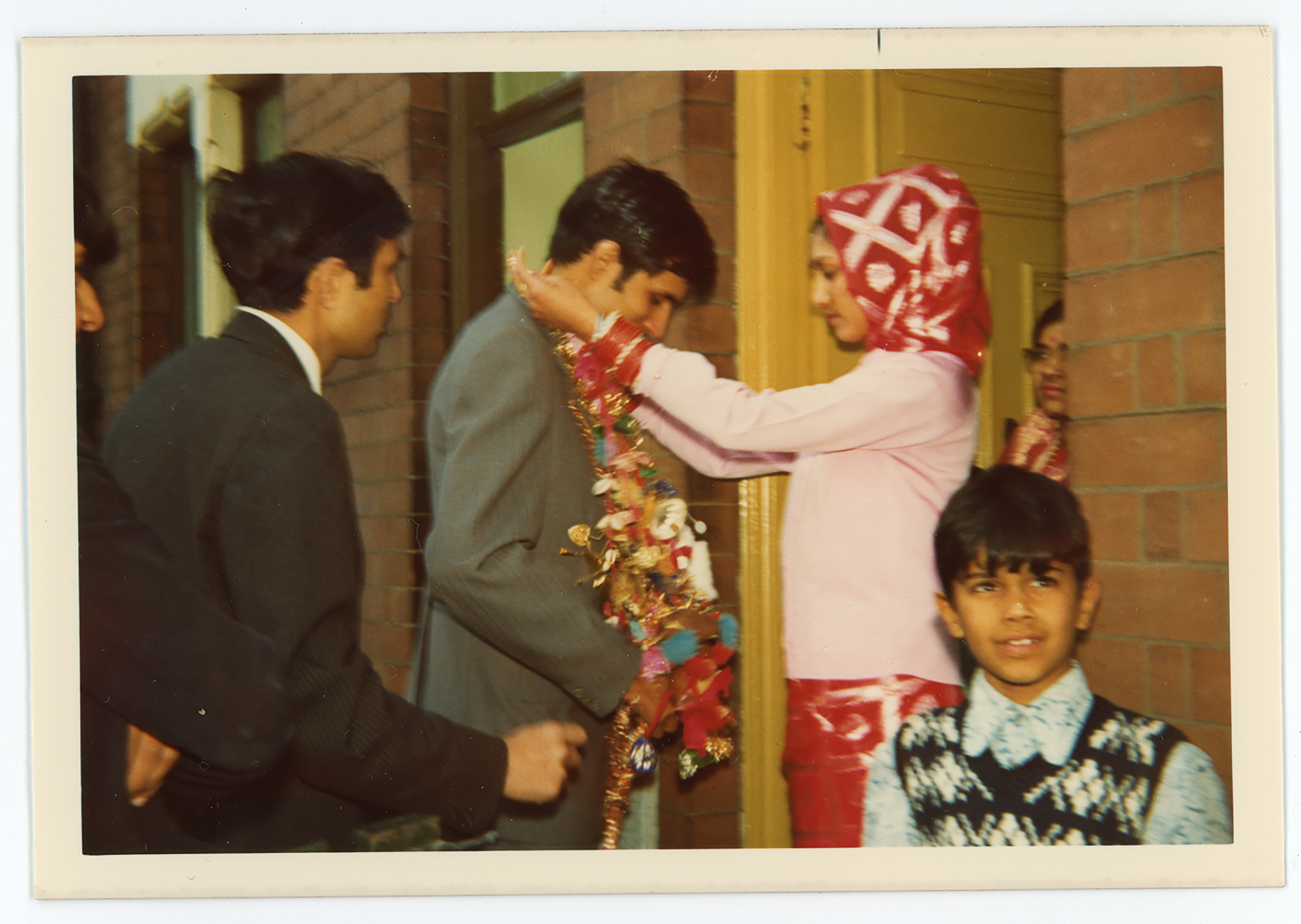 A family return home after a wedding ceremony in Derby.