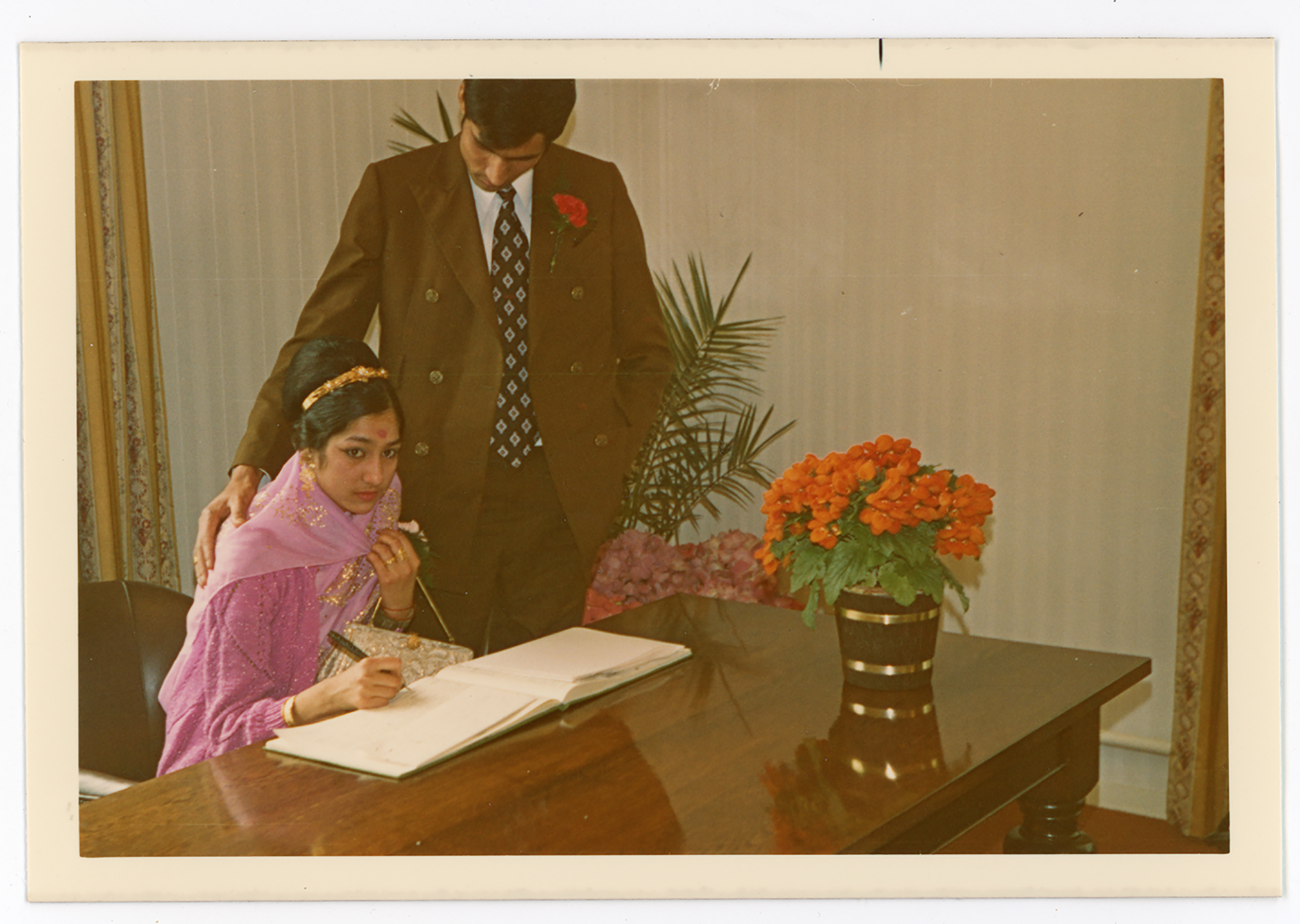 A couple sign forms on their wedding day. Take at Derby Registry Office.