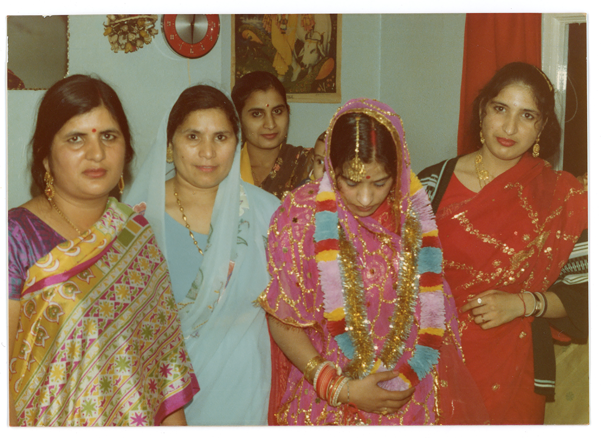 A family celebrate a new bride in a home in Derby.