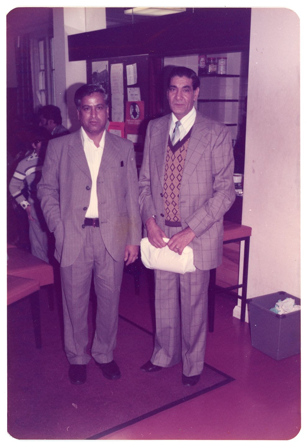 Two people pose for a photograph during wedding celebrations in a home in Derby.