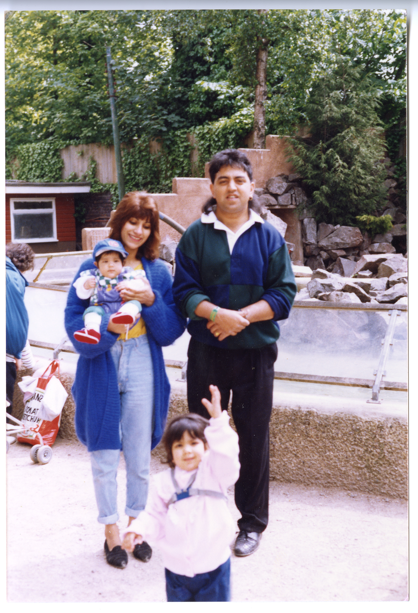 A family pose in front of an animal enclosure at Drayton Manor in Derby.